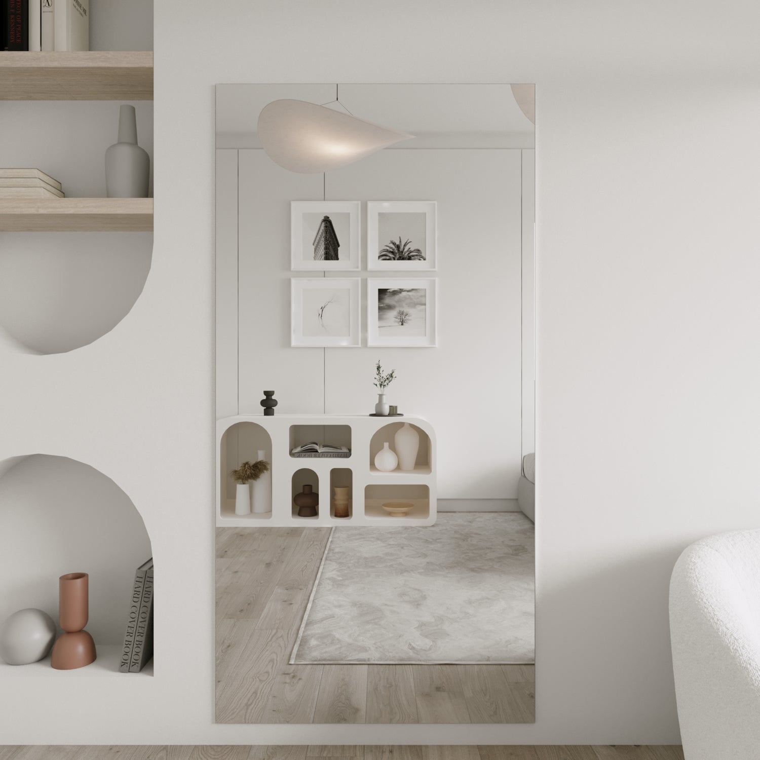 The Mega Recta is our newest statement mirror, designed in an impressive extra-large scale. With its clean, refined lines and expansive reflective surface, it enhances light and depth effortlessly — the perfect piece for larger spaces seeking modern simplicity with impact.